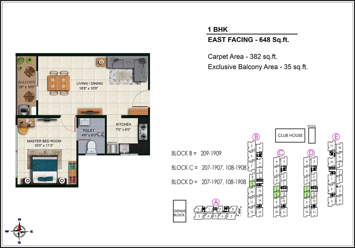 | 1 BHK | 648 Sq.Ft | ₹ 40.3 Lacs* Onwards |