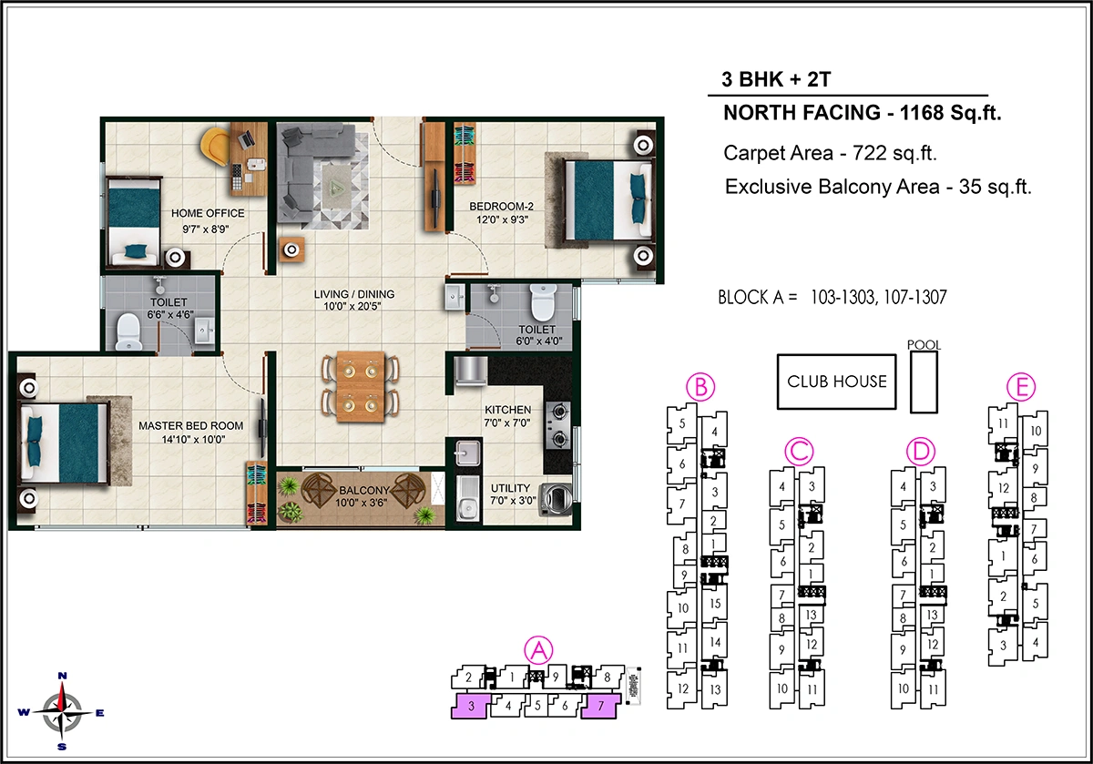 | 3 BHK - Regular | 1349 Sq.Ft. | ₹ 80.8 Lacs* Onwards |